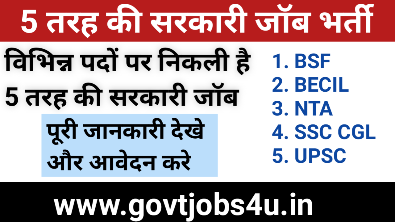नौकरी कर रहे युवाओ के लिए खुश खबरि है हम आज आप सभी युवाओ के लिए जो govt job की तैयारी कर रहे है के लिए लेकर आये है 5 सरकारी जॉब की जानकारी जिनमे कही पदों पर भर्ती निकली है